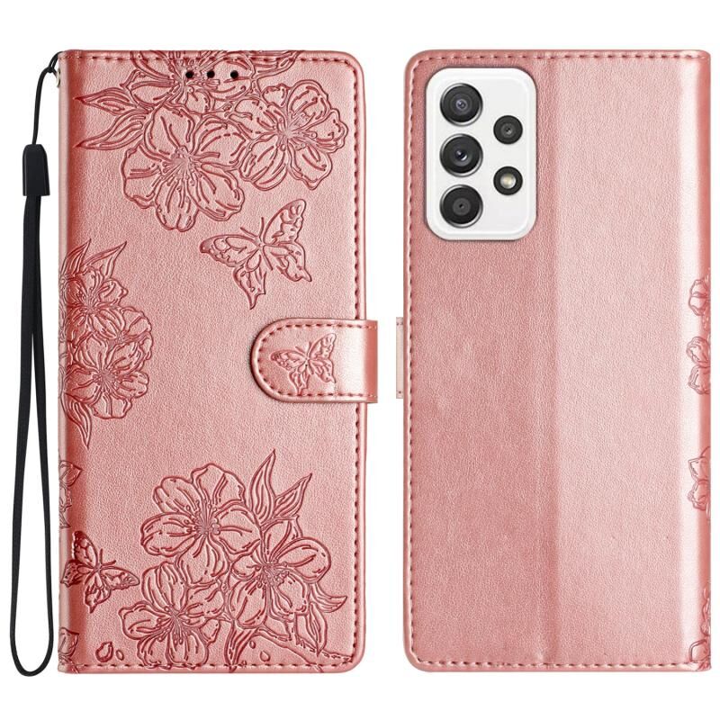 Θήκη τηλεφώνου Samsung Galaxy A72 5G Cherry Blossom Butterfly με ανάγλυφη υφή PU (Κόκκινη)