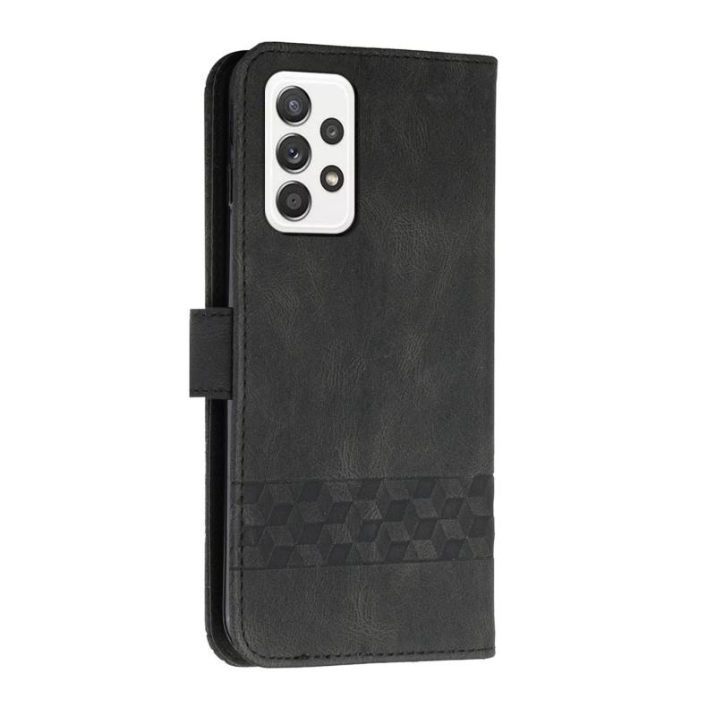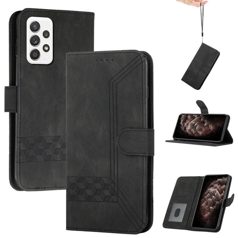 Θήκη τηλεφώνου Samsung Galaxy A72 5G από δέρμα με αίσθηση Cubic Skin, τύπου flip (Μαύρο)