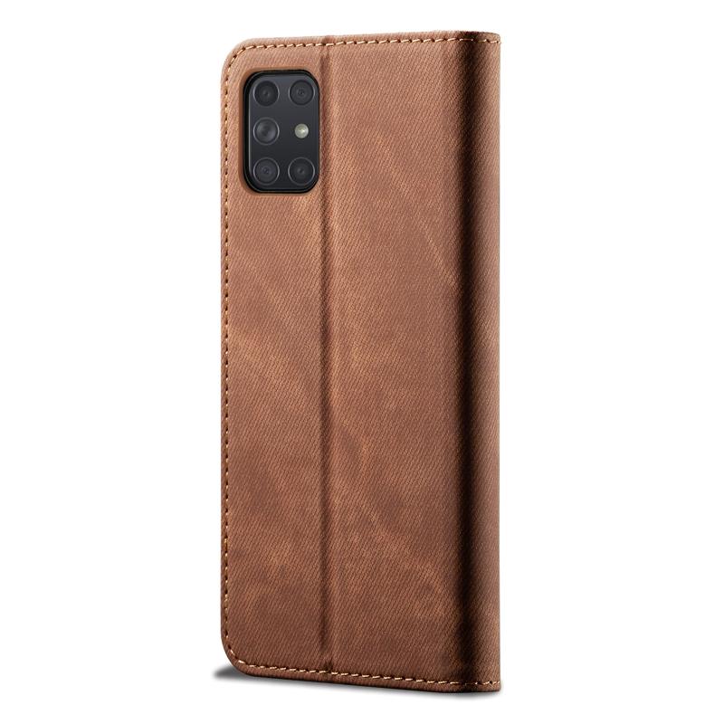 Θήκη Samsung Galaxy A72 5G, Δερμάτινη, Οριζόντια, με Υφή Denim, Casual Στυλ, με Θήκη & Θήκες Καρτών & Πορτοφόλι (Καφέ)