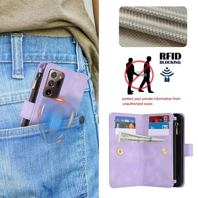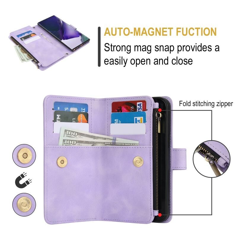Για Samsung Galaxy A72 5G Dream 9-κάρτα φερμουάρ πορτοφόλι RFID δερμάτινη θήκη τηλεφώνου με κορδόνι (μωβ)