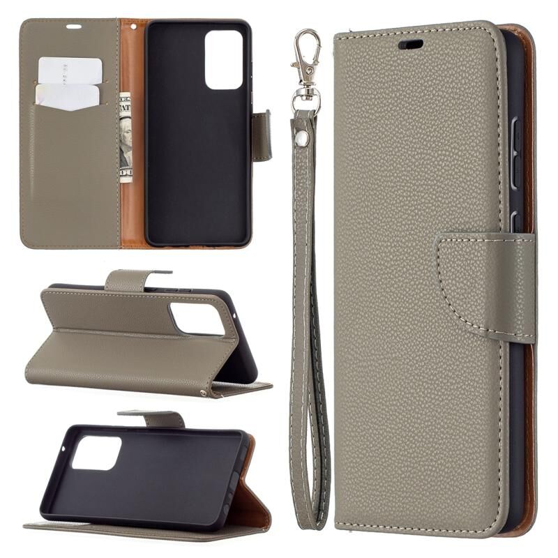 Για Samsung Galaxy A72 5G Litchi υφή καθαρό χρώμα οριζόντια Flip PU δέρμα υπόθεση με θήκη & υποδοχές για κάρτες & πορτοφόλι & κορδόνι (Γκρι)