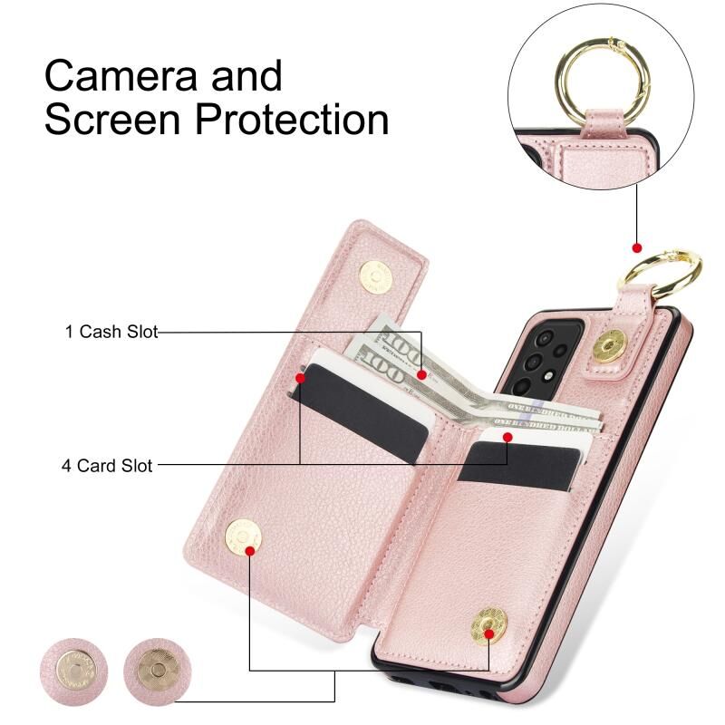 Για Samsung Galaxy A72 5G Litchi υφή φερμουάρ διπλή πόρπη κάρτα τσάντα υπόθεση τηλεφώνου (Rose Gold)