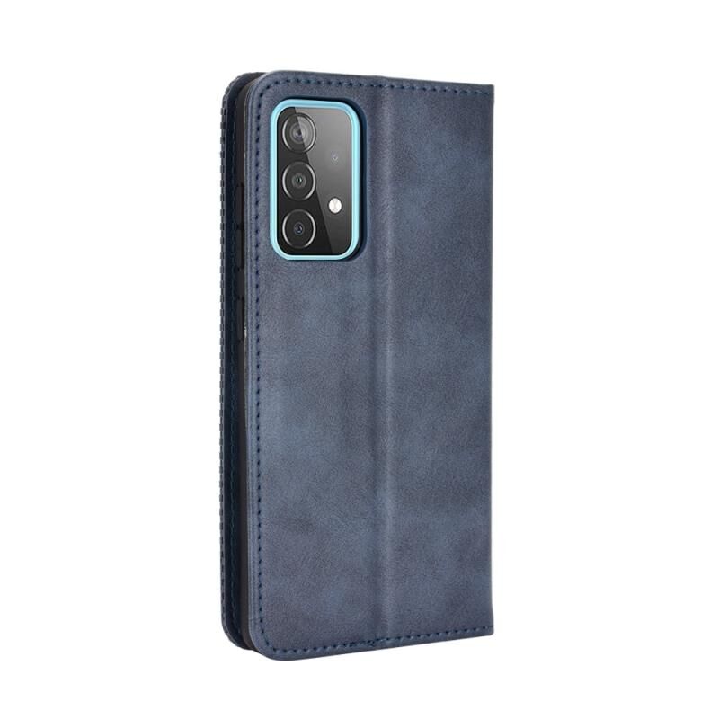 Για Samsung Galaxy A72 5G Μαγνητική πόρπη Ρετρό τρελό άλογο υφή οριζόντια Flip δερμάτινη θήκη με θήκη & υποδοχές για κάρτες & πλαίσιο φωτογραφιών (μπλε)