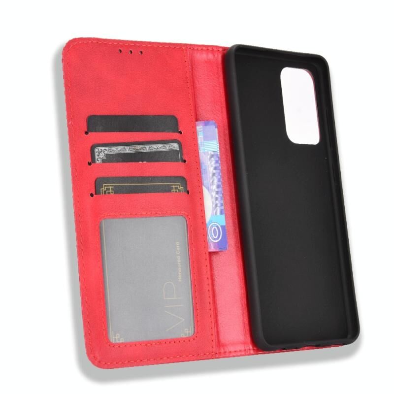 Για Samsung Galaxy A72 5G Μαγνητική πόρπη Retro Crazy Horse Υφή οριζόντια Flip δερμάτινη θήκη με θήκη & υποδοχές για κάρτες & πλαίσιο φωτογραφιών (κόκκινο)