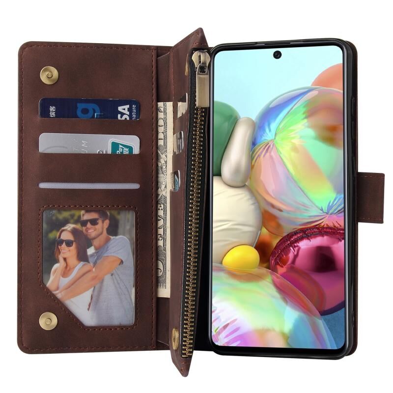 Για Samsung Galaxy A72 5G Πολυλειτουργικό παγωμένο φερμουάρ πορτοφόλι δερμάτινη θήκη τηλεφώνου (καφέ)