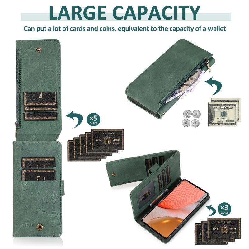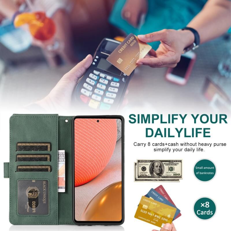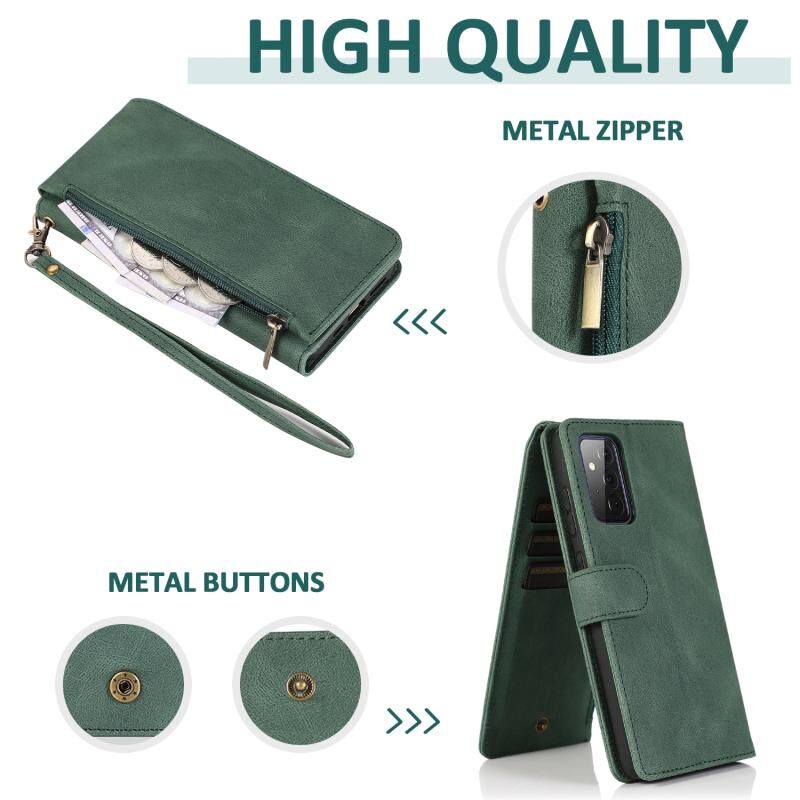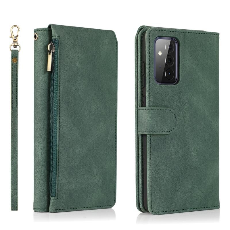Για Samsung Galaxy A72 5G Skin-feel Crazy Horse υφή φερμουάρ πορτοφόλι τσάντα οριζόντια Flip δερμάτινη θήκη με κάτοχο & υποδοχές για κάρτες & πορτοφόλι & Lanyard (σκούρο πράσινο)