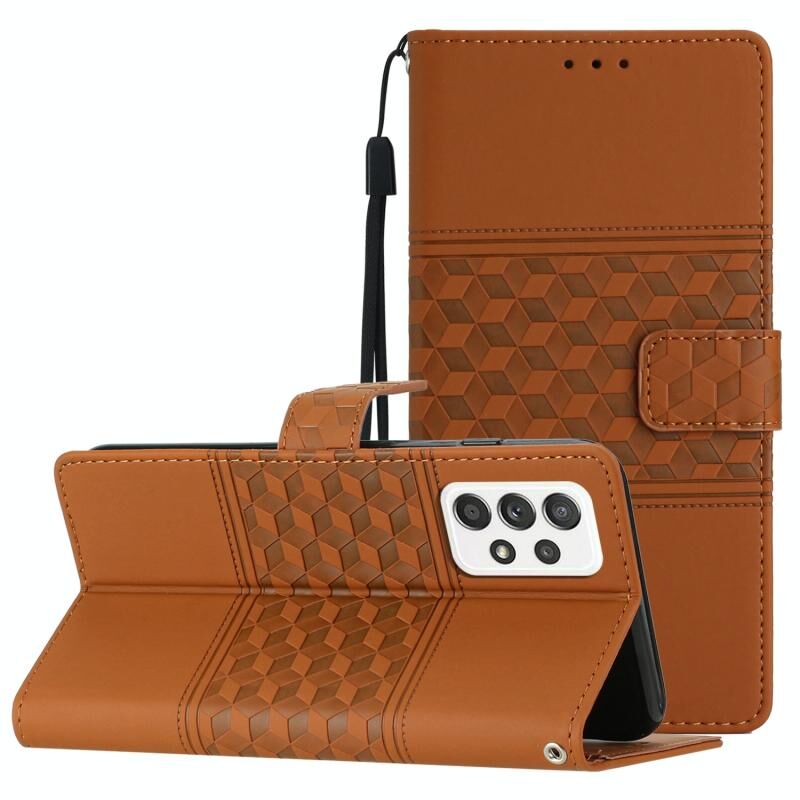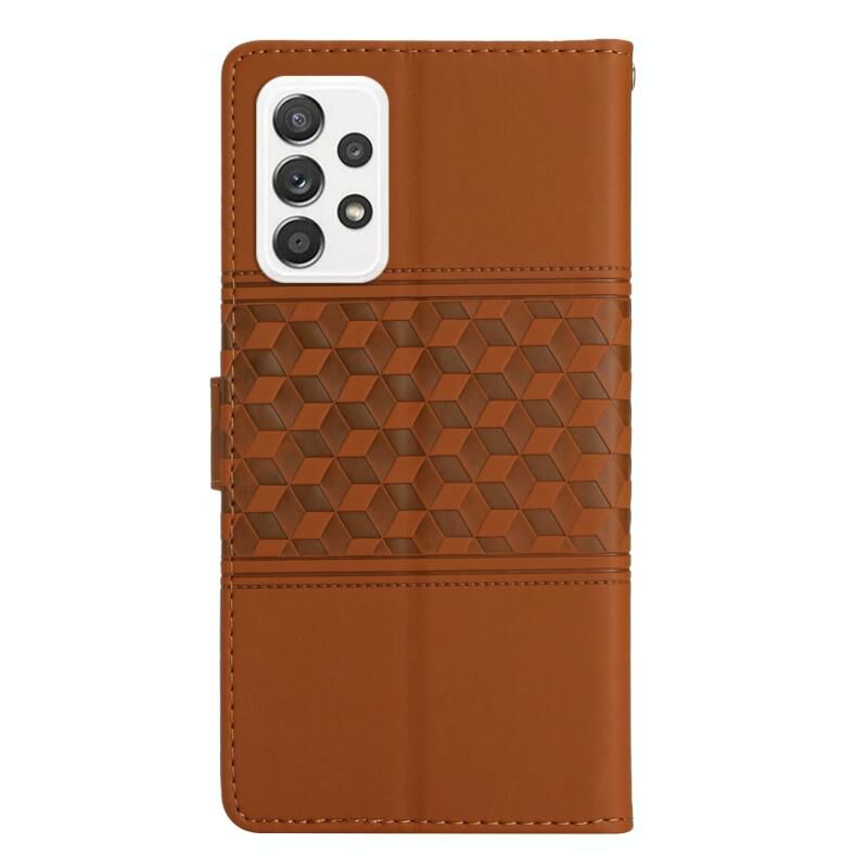Για Samsung Galaxy A72 Diamond ανάγλυφο δέρμα αίσθηση δέρμα υπόθεση τηλεφώνου με κορδόνι (καφέ)