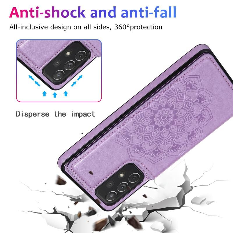 Για Samsung Galaxy A72 Διπλή πόρπη Mandala PU + PU υπόθεση τηλεφώνου (Μωβ)