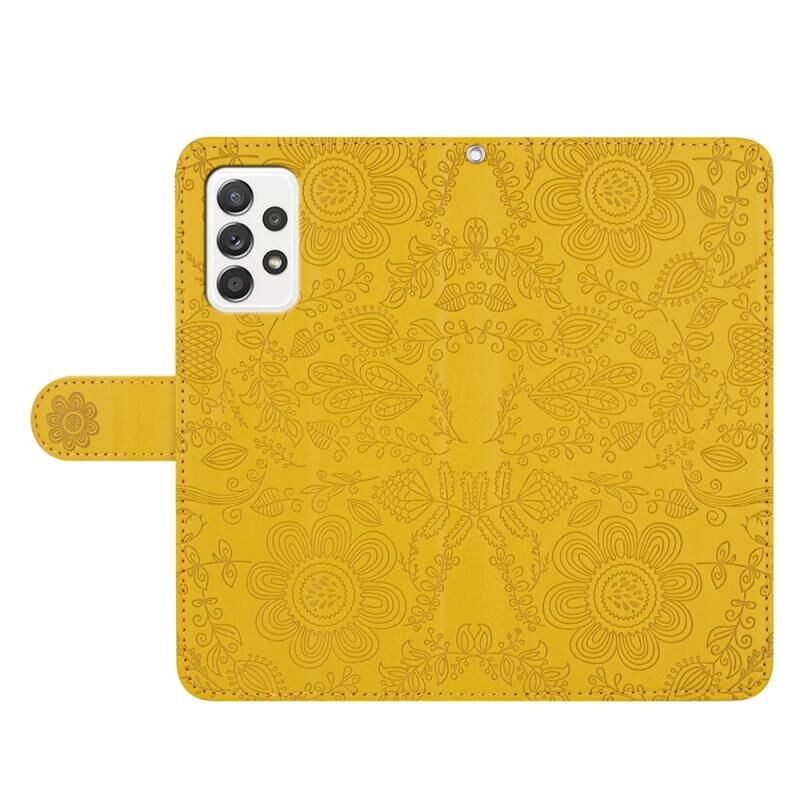 Για Samsung Galaxy A72 Floral ανάγλυφο μοτίβο δερμάτινη θήκη τηλεφώνου (κίτρινο)