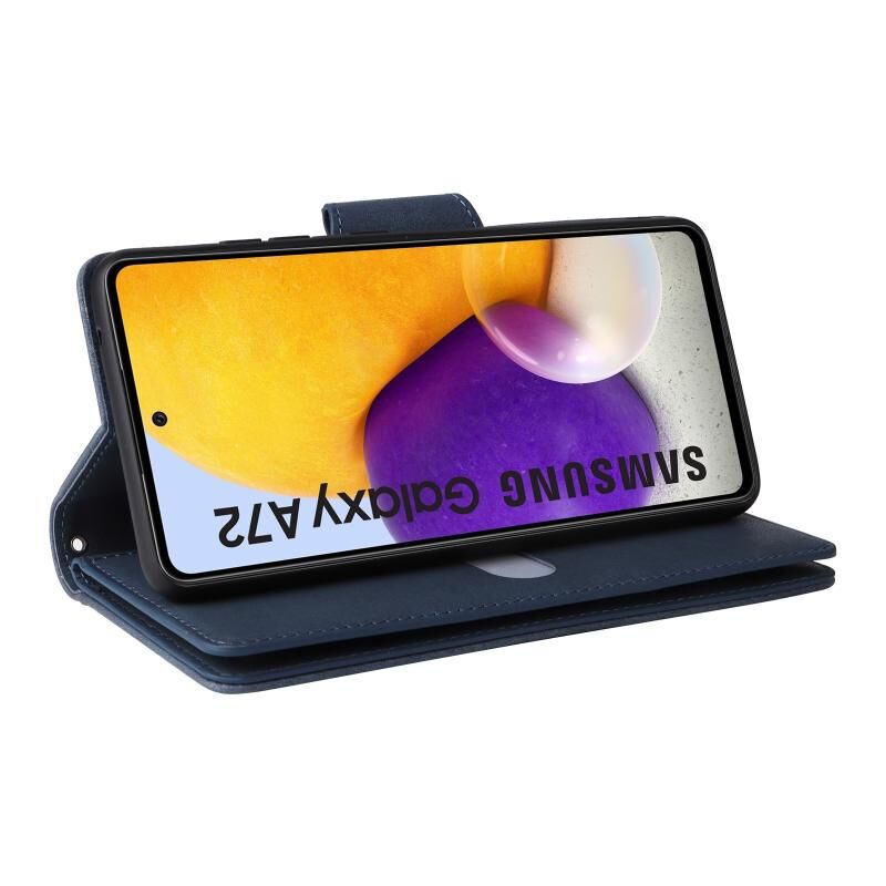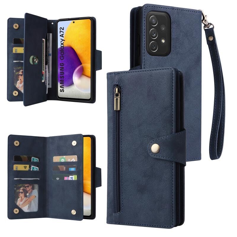 Για Samsung Galaxy A72 Rivet πόρπη 9 κάρτες τρεις φορές δερμάτινη θήκη τηλεφώνου (Μπλε)