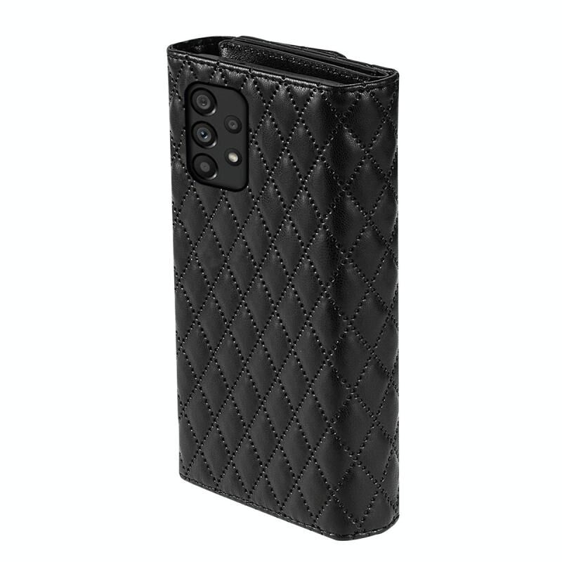 Για το Samsung Galaxy A72 φερμουάρ πολλαπλών καρτών πορτοφόλι ρομβοειδή δερμάτινη θήκη τηλεφώνου (μαύρο)