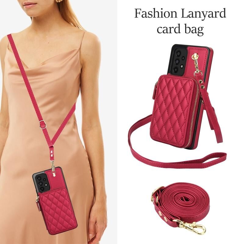 Θήκη κινητού τηλεφώνου AwQuer Crossbody με φερμουάρ και δερμάτινη πλάτη σε ρόμβους για Samsung Galaxy A73 4G / 5G (Μαύρο) (Awquer)