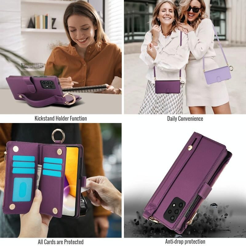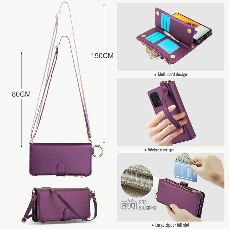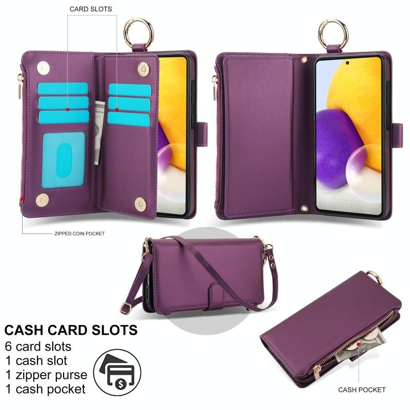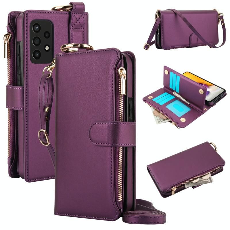 Για Samsung Galaxy A73 4G / 5G Crossbody Ring Πολυλειτουργική θήκη τηλεφώνου δερμάτινο πορτοφόλι (σκούρο μωβ)