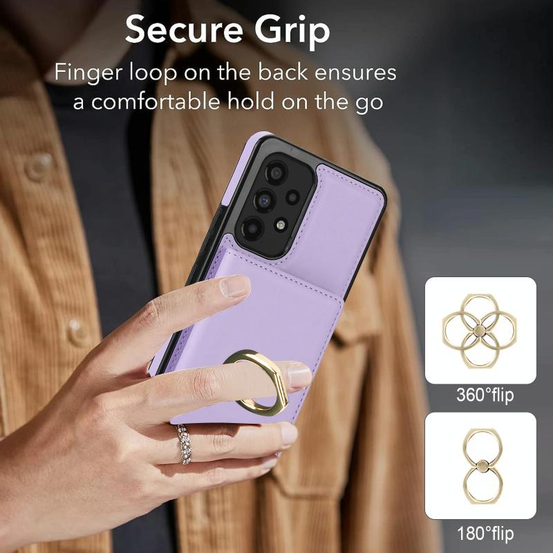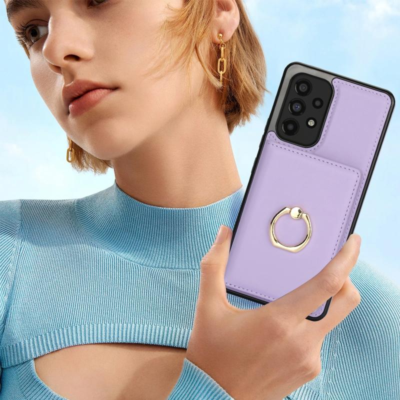 For Samsung Galaxy A73 4G/5G RFID Anti-theft Card Ring Holder Phone Case(Purple)