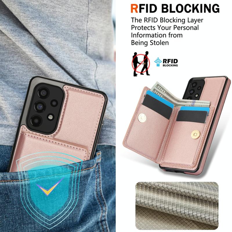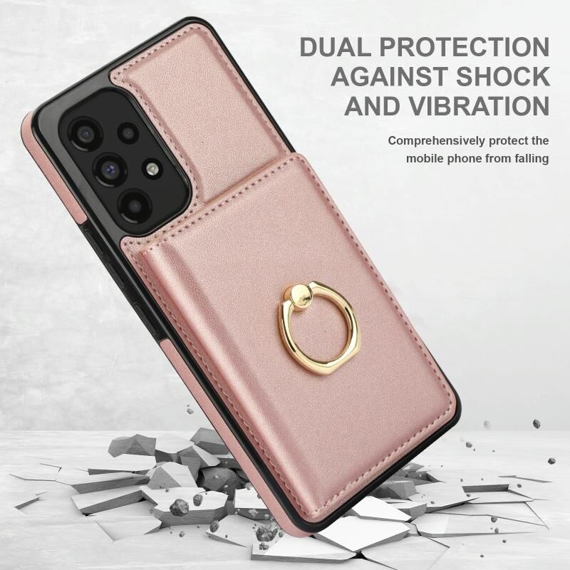 For Samsung Galaxy A73 4G/5G RFID Anti-theft Card Ring Holder Phone Case(Rose Gold)
