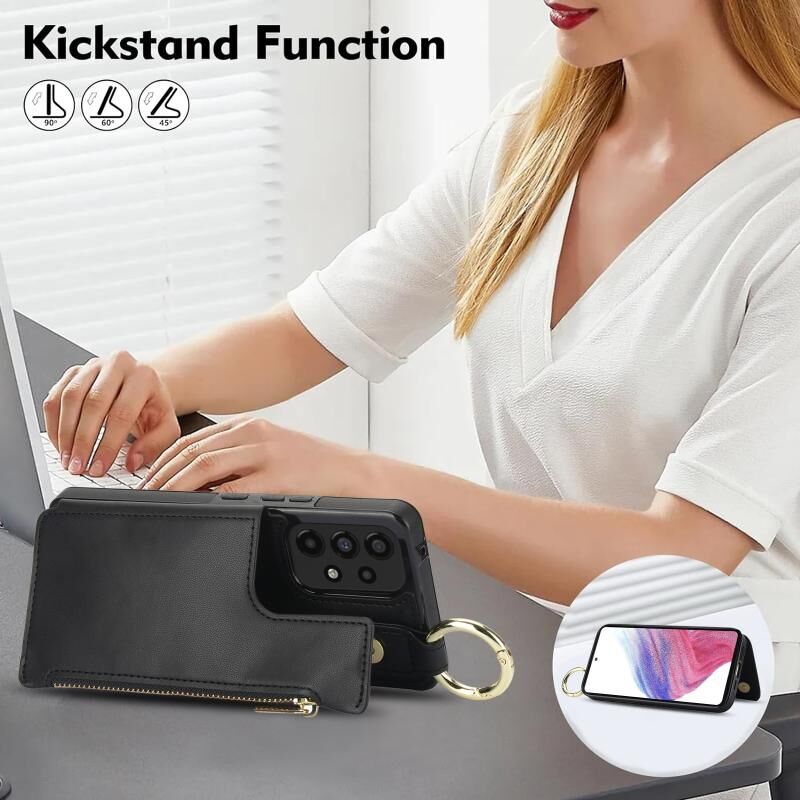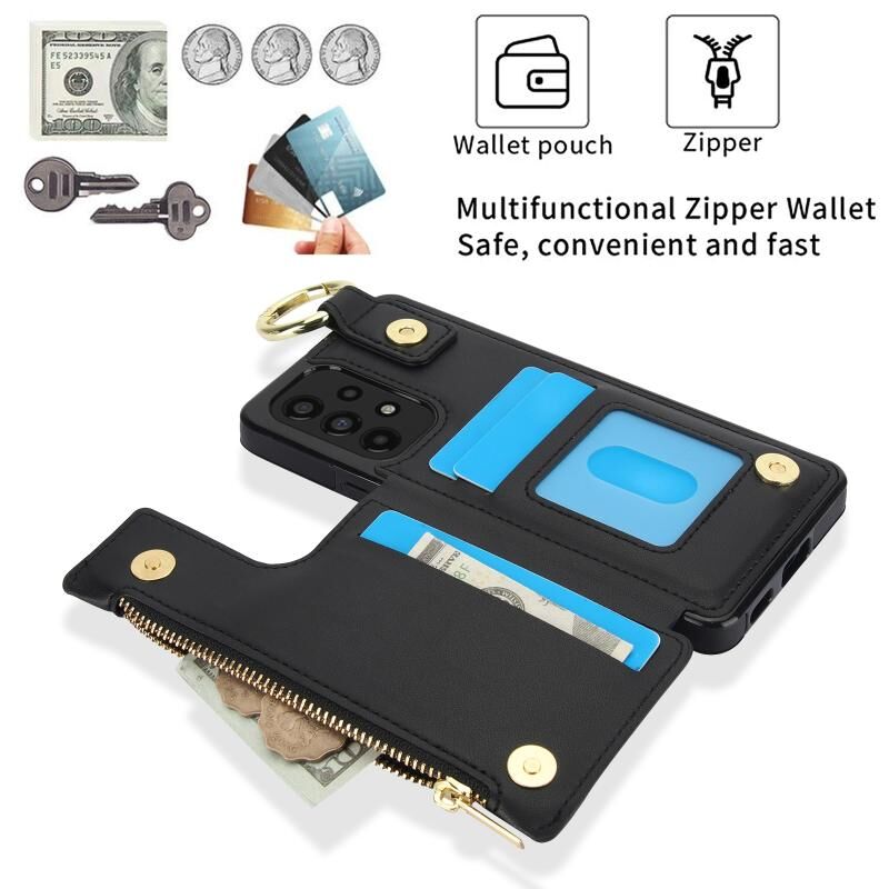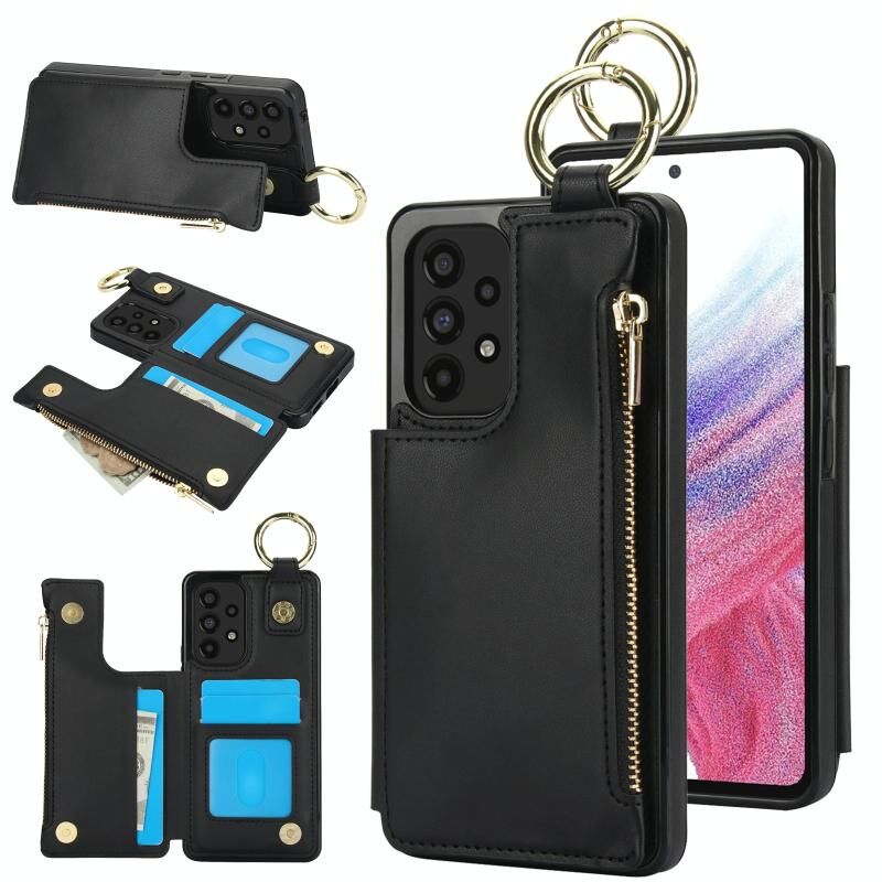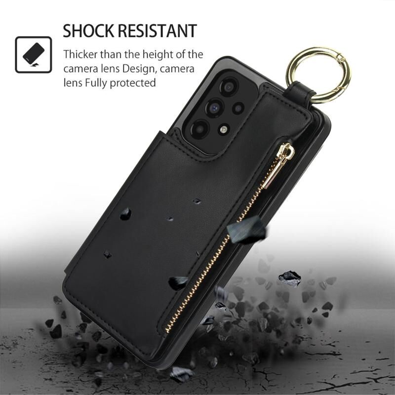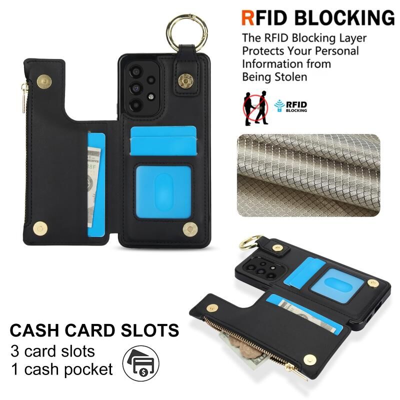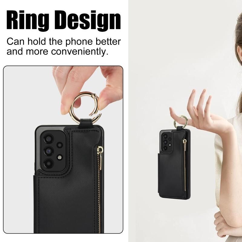 Για Samsung Galaxy A73 4G / 5G RFlD Anti-theft Διπλό πόρπη δαχτυλίδι φερμουάρ τηλέφωνο υπόθεση κάρτα (μαύρο)