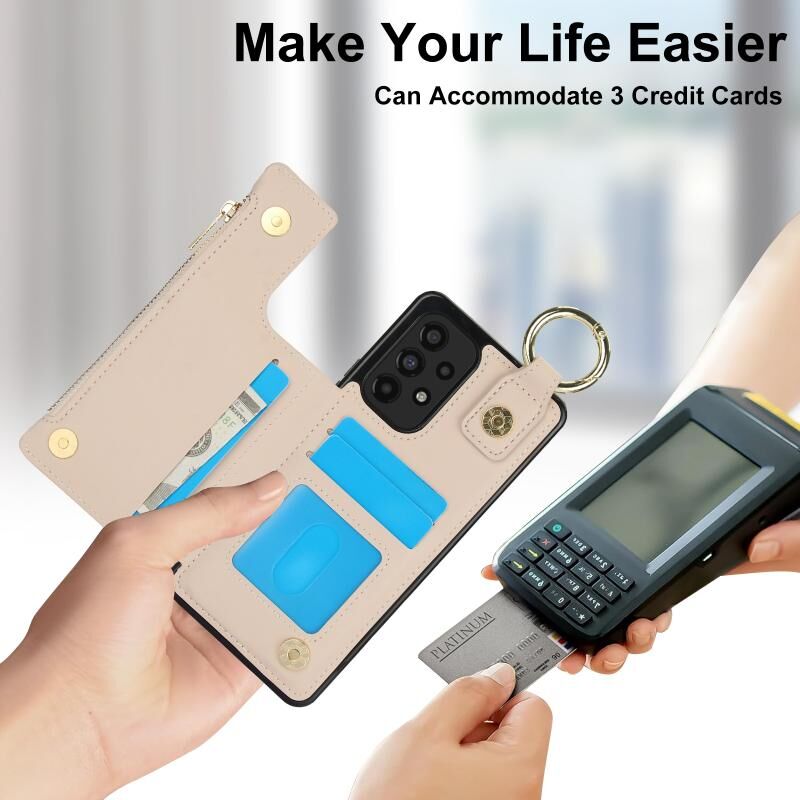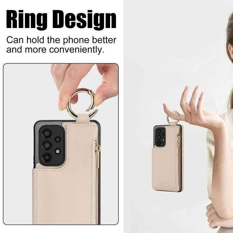 Για Samsung Galaxy A73 4G / 5G RFlD Anti-theft Διπλό πόρπη δαχτυλίδι φερμουάρ τηλέφωνο υπόθεση κάρτα (λευκό)