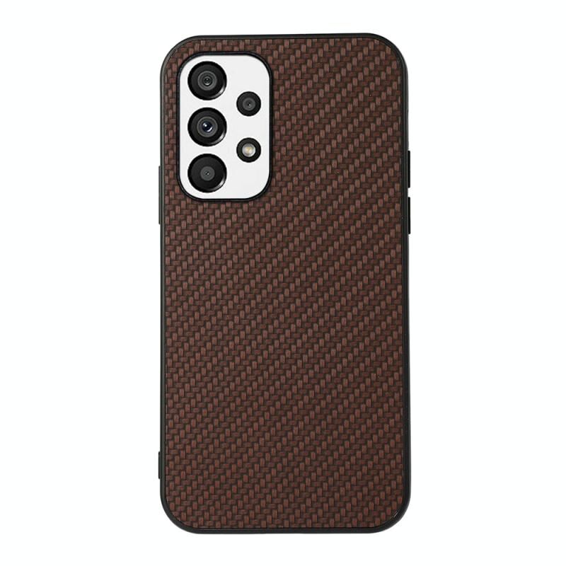 Για Samsung Galaxy A73 5G Ακριβής τρύπα ανθρακονήματα υφή PU τηλέφωνο υπόθεση (καφέ)