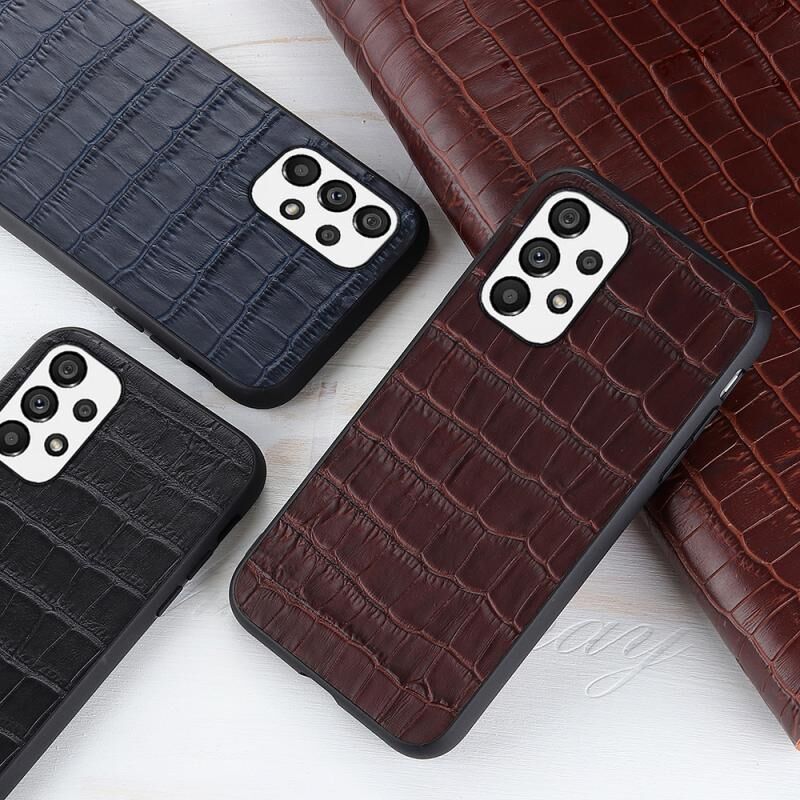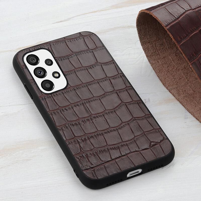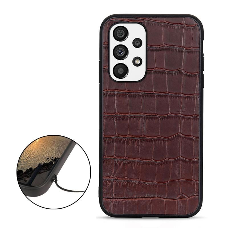 Θήκη τηλεφώνου από γνήσιο δέρμα με υφή κροκόδειλου και ακριβείς οπές για Samsung Galaxy A73 5G (Καφέ)
