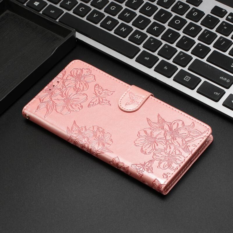 Θήκη τηλεφώνου Samsung Galaxy A73 5G Cherry Blossom Butterfly με ανάγλυφο PU υλικό που θυμίζει δέρμα (Ροζ χρυσός)