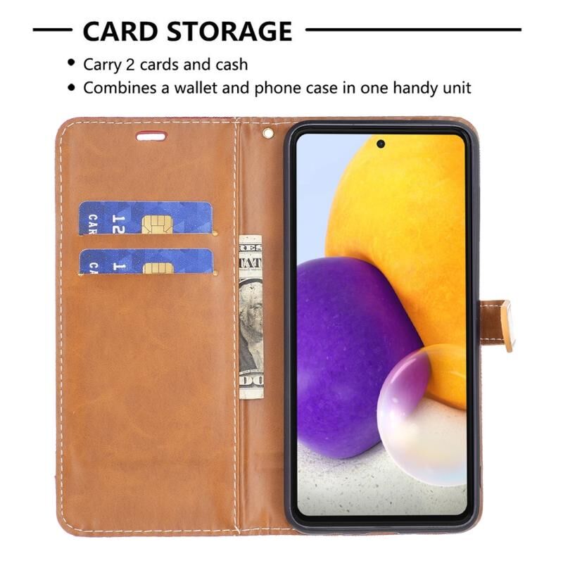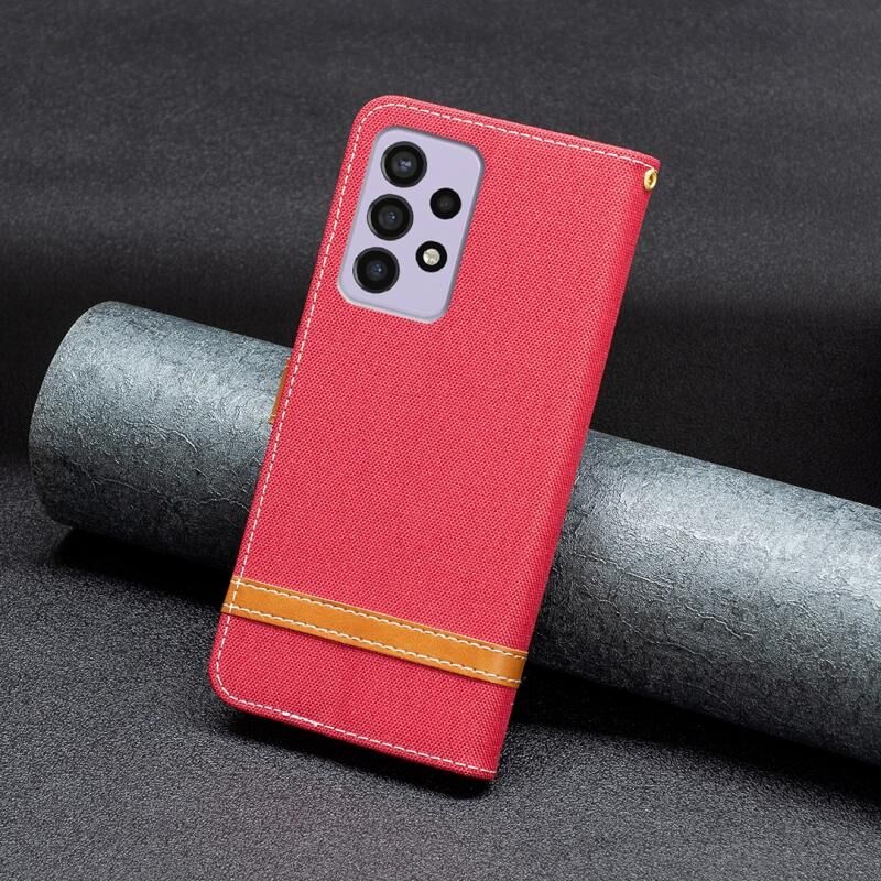 Για το Samsung Galaxy A73 5G χρώμα ταιριάζει Denim υφή δερμάτινη θήκη τηλεφώνου (κόκκινο)