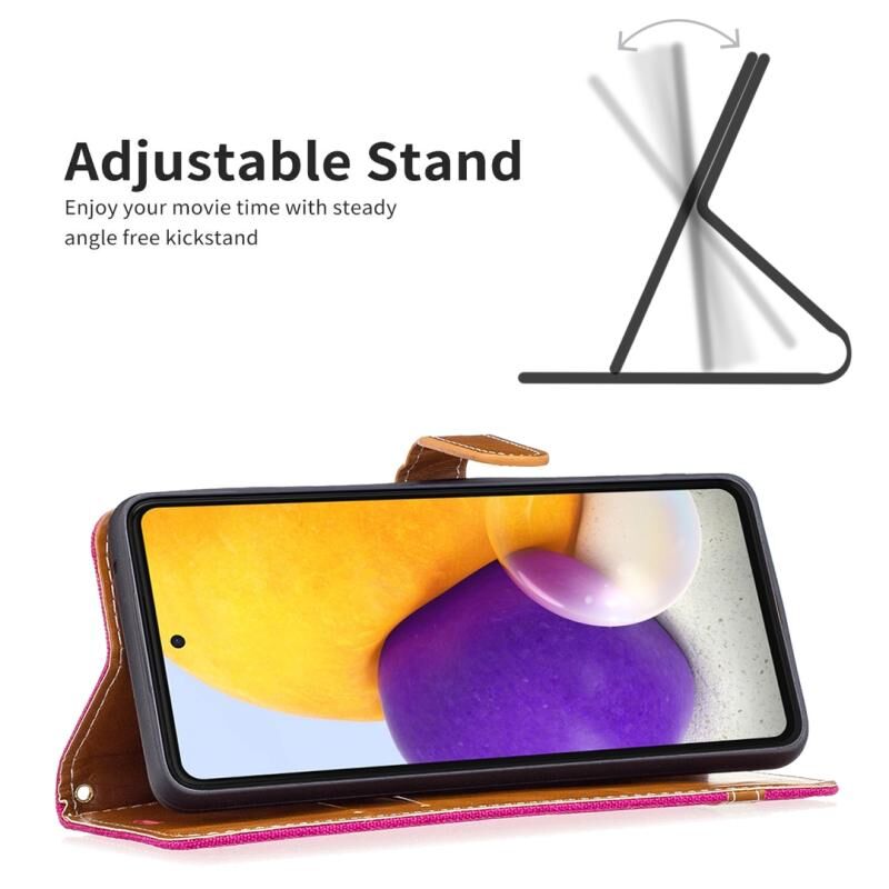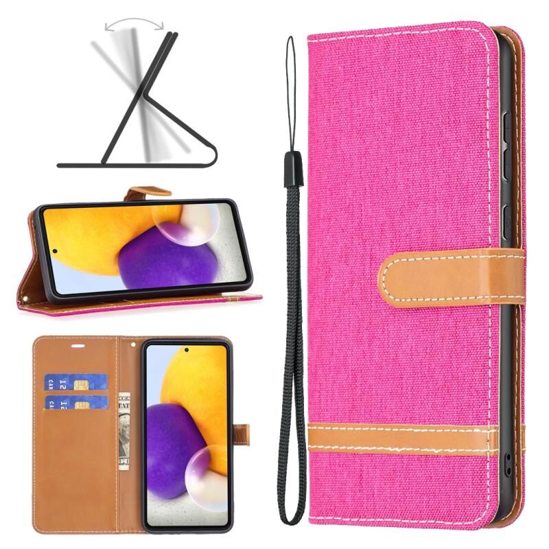 Για το Samsung Galaxy A73 5G χρώμα ταιριάζει Denim υφή δερμάτινη θήκη τηλεφώνου (Rose Red)