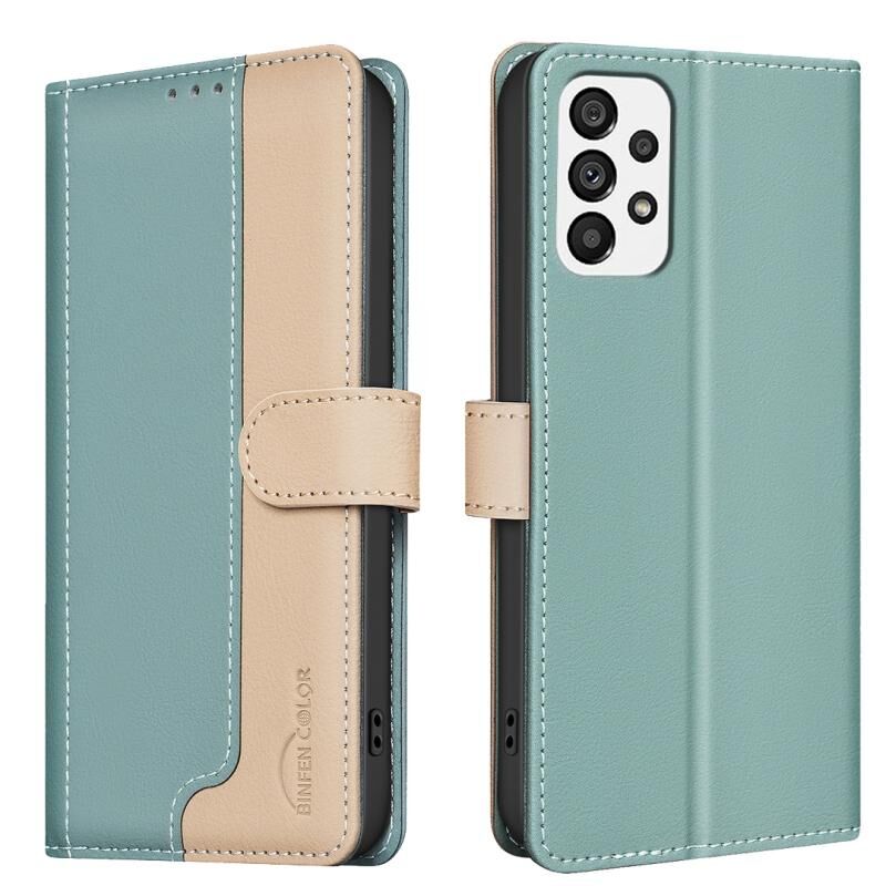 Θήκη τηλεφώνου δερμάτινη με τεχνολογία RFID κατά της κλοπής, σε πράσινο χρώμα, για Samsung Galaxy A73 5G με αντιστοίχιση χρώματος.