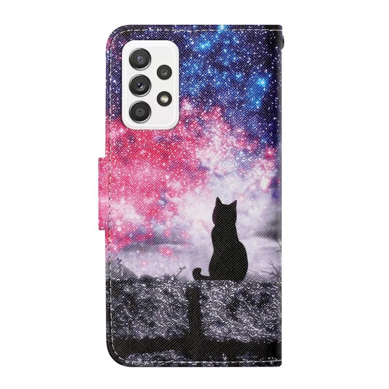 Θήκη δέρματος τύπου flip με πολύχρωμο σχέδιο (γάτα στον αστέρινο ουρανό) για Samsung Galaxy A73 5G.