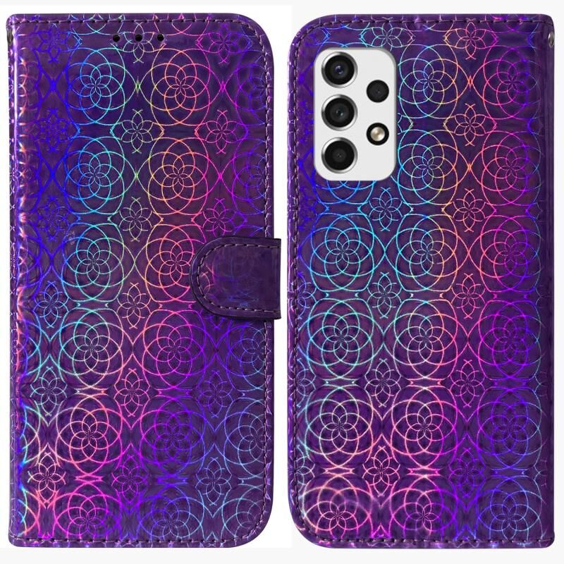 Για Samsung Galaxy A73 5G Πολύχρωμο μαγνητική πόρπη δερμάτινη θήκη τηλεφώνου (μωβ)