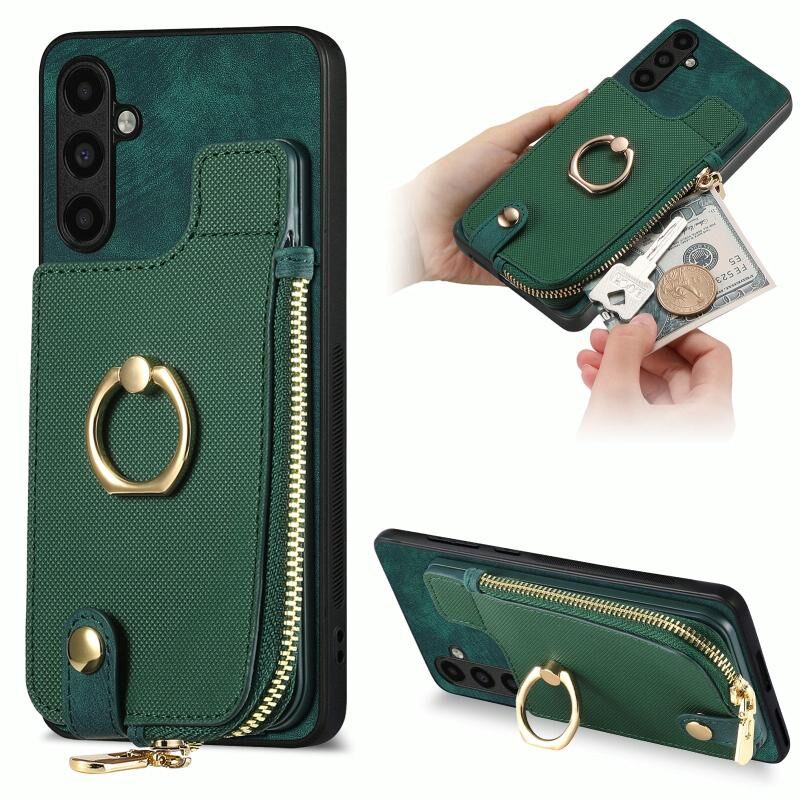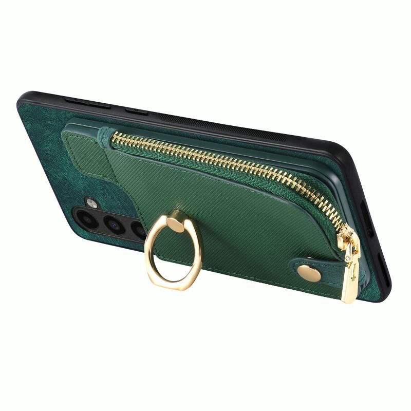 Για Samsung Galaxy A73 5G Cross Δερμάτινο δαχτυλίδι κάθετη φερμουάρ πορτοφόλι πίσω υπόθεση τηλεφώνου (πράσινο)