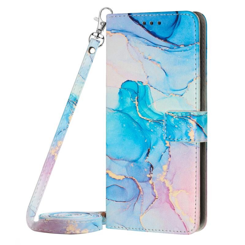 Θήκη τηλεφώνου Samsung Galaxy A73 5G, δερμάτινη με σχέδιο μαρμάρου, ζωγραφισμένη, για crossbody (Μωβ)