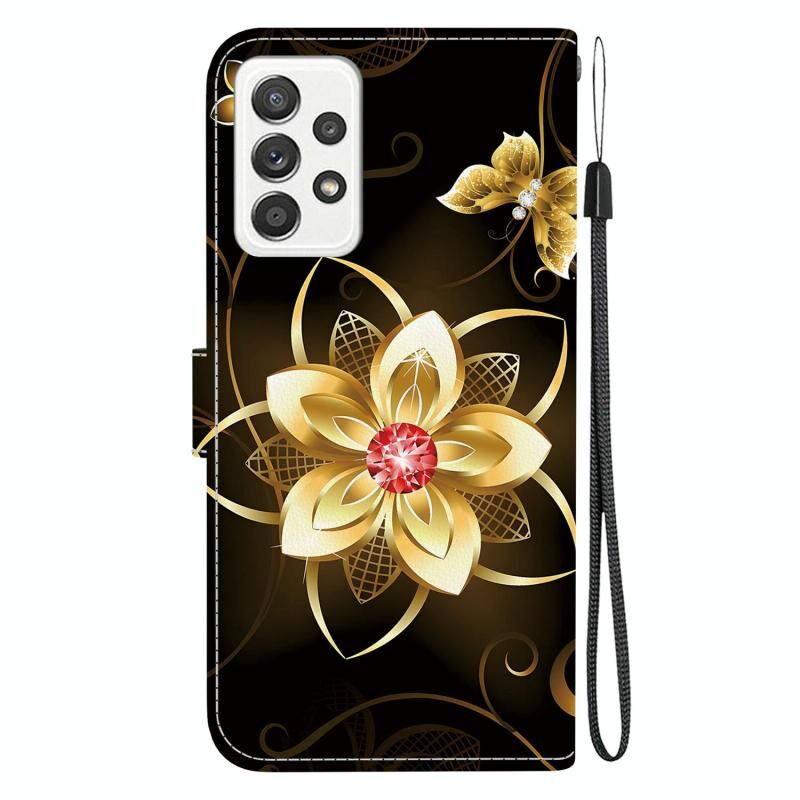 Θήκη τηλεφώνου Samsung Galaxy A73 5G από δέρμα με πολύχρωμο σχέδιο κρυστάλλινης υφής (Χρυσά Φτερά Πεταλούδας)