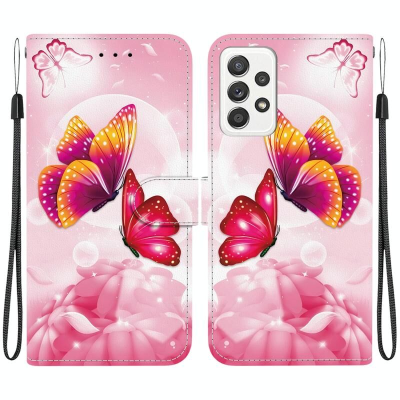 Θήκη τηλεφώνου Samsung Galaxy A73 5G από δέρμα με πολύχρωμο σχέδιο κρυστάλλινης υφής (Χρυσά Φτερά Πεταλούδας)