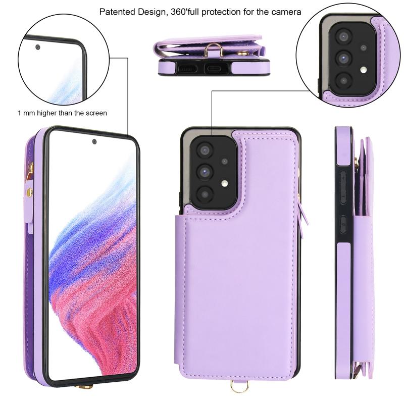 For Samsung Galaxy A73 5G Double Flap Zipper RFID Leather Phone Case with Short Lanyard(Light Purple)