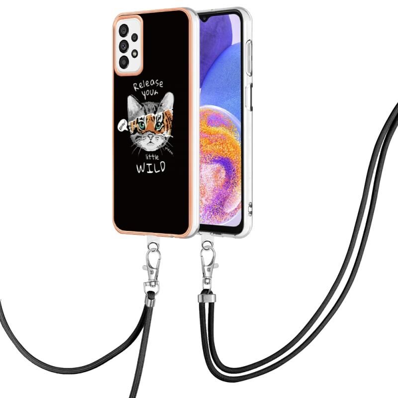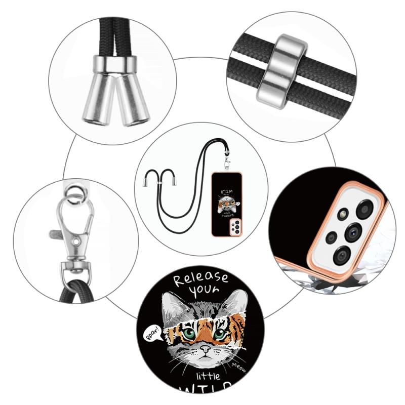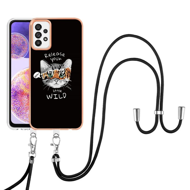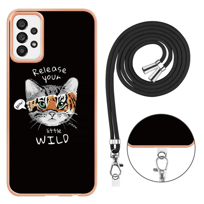 For Samsung Galaxy A73 5G Electroplating Dual-side IMD Phone Case with Lanyard(Natural Growth)