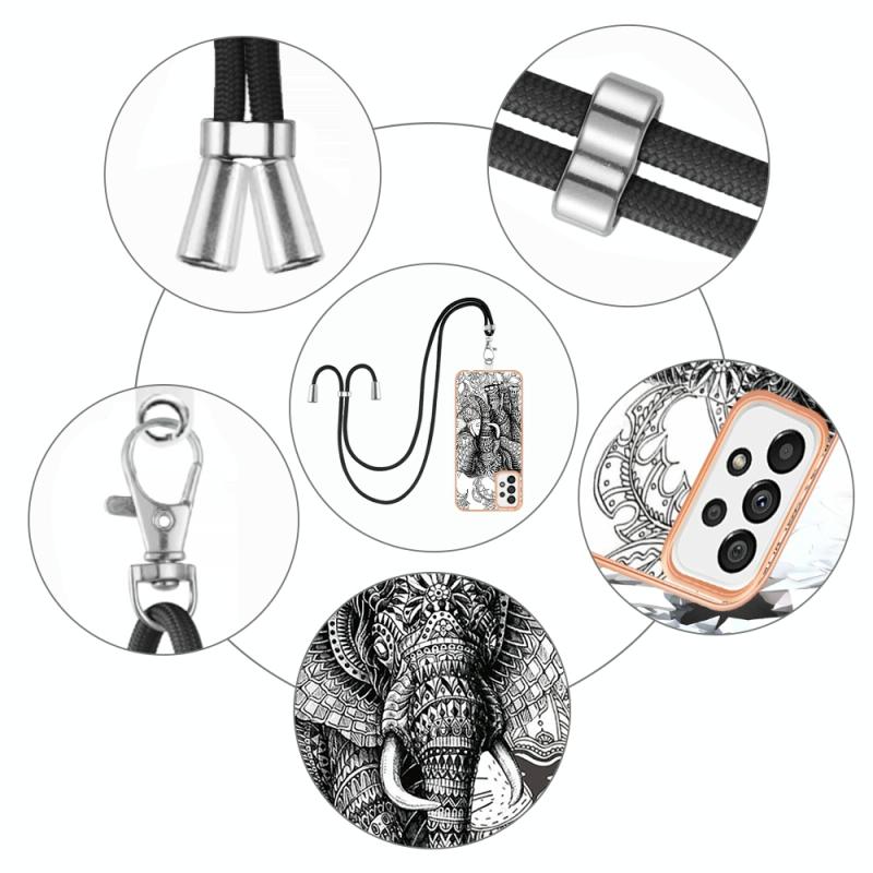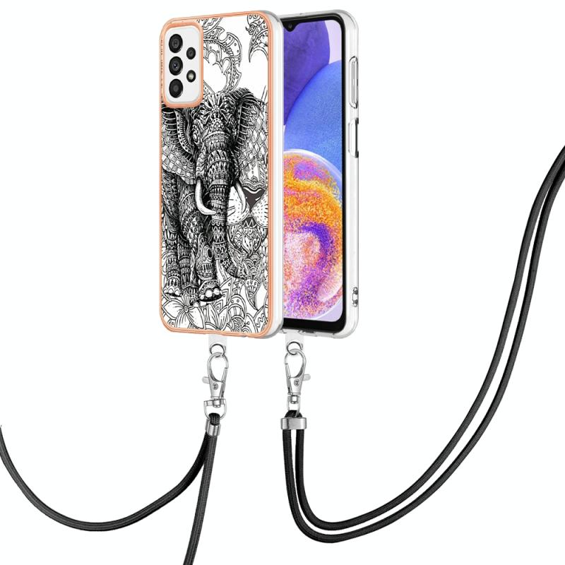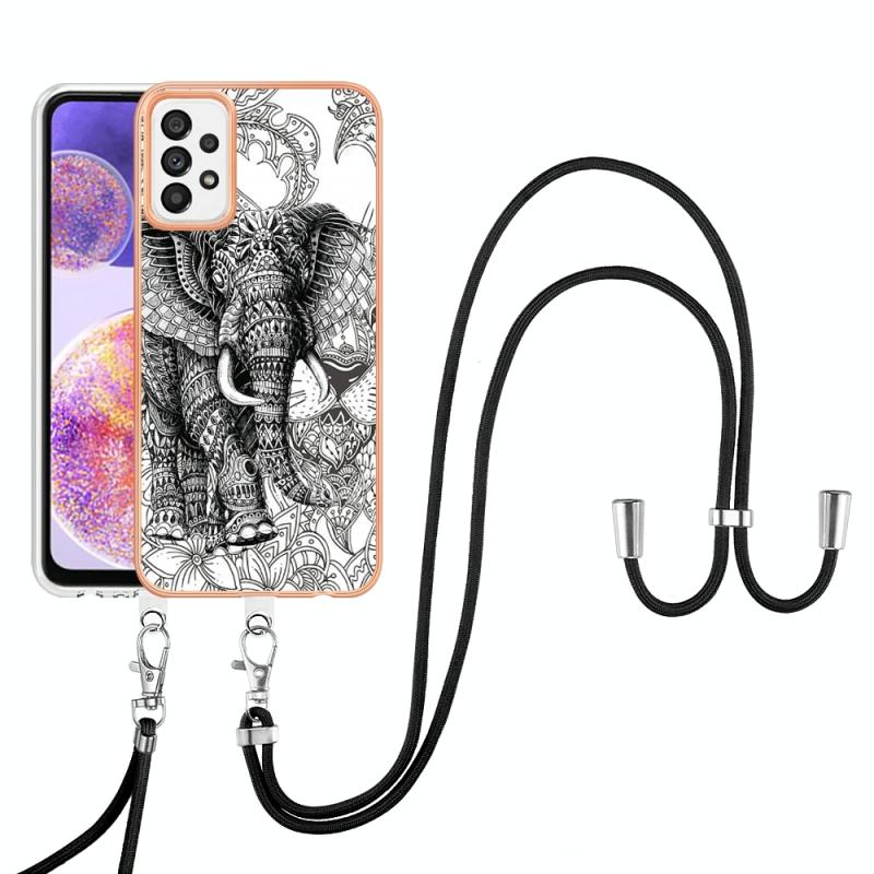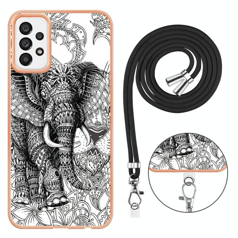 For Samsung Galaxy A73 5G Electroplating Dual-side IMD Phone Case with Lanyard(Totem Elephant)