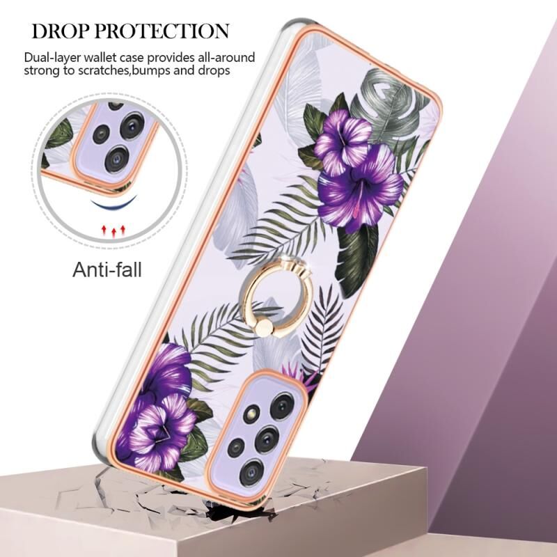 Θήκη κινητού τηλεφώνου Samsung Galaxy A73 5G με δακτύλιο, από TPU με ηλεκτρολυτική επιμετάλλωση IMD (Μωβ Λουλούδι)
