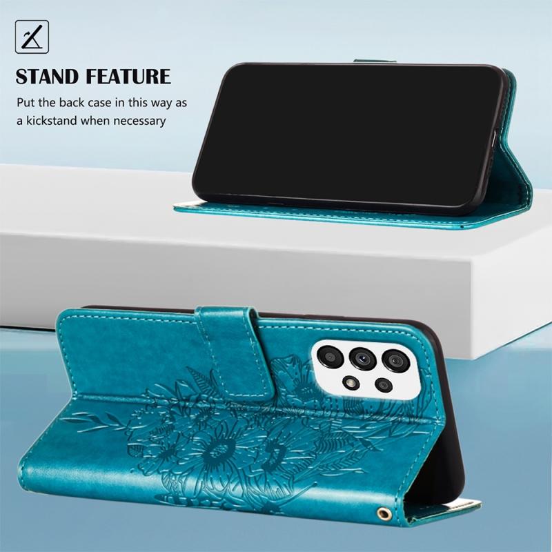 For Samsung Galaxy A73 5G Embossed Butterfly Leather Phone Case(Blue)