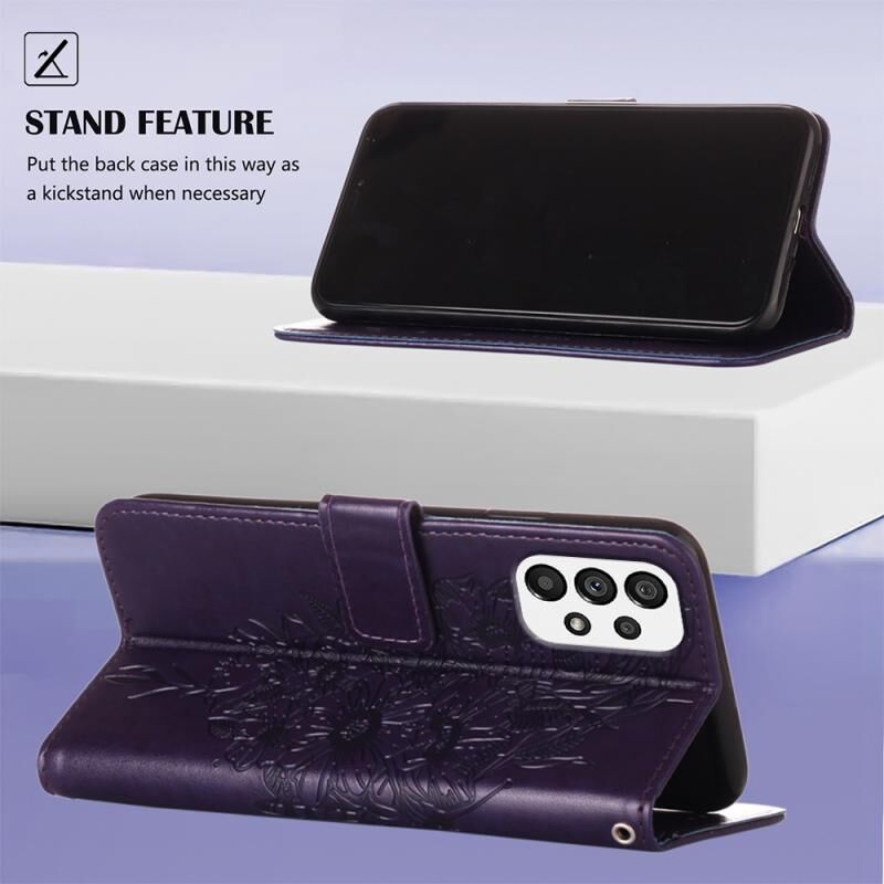 Θήκη τηλεφώνου δερμάτινη με ανάγλυφο σχέδιο πεταλούδας για Samsung Galaxy A73 5G (Σκούρο μωβ)