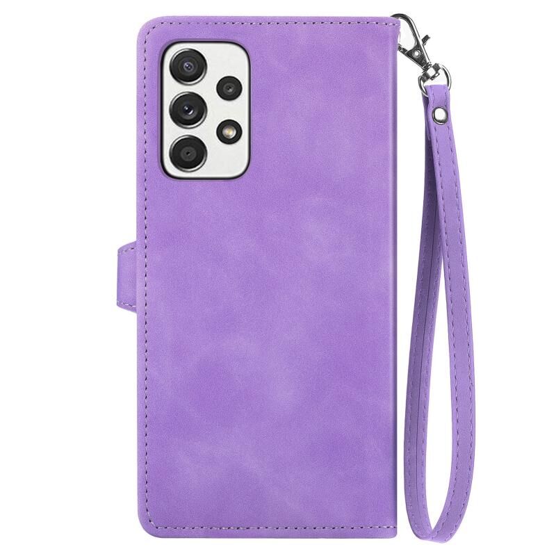 Για Samsung Galaxy A73 5G ανάγλυφο λουλούδι Shockproof δέρμα τηλέφωνο υπόθεση (μωβ)