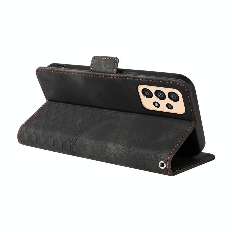 Για Samsung Galaxy A73 5G ανάγλυφο ρόμβος αστερόεσσα δερμάτινη θήκη τηλεφώνου (μαύρο)