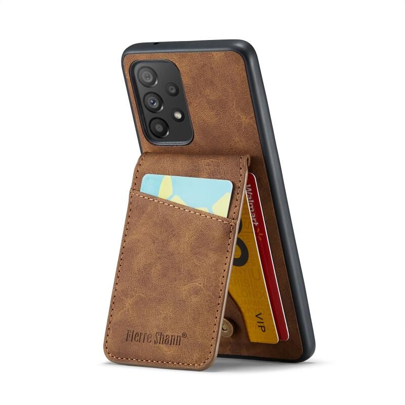Για Samsung Galaxy A73 5G Fierre Shann Crazy Horse Card Holder πίσω κάλυμμα PU υπόθεση τηλεφώνου (καφέ) (FIERRE SHANN)