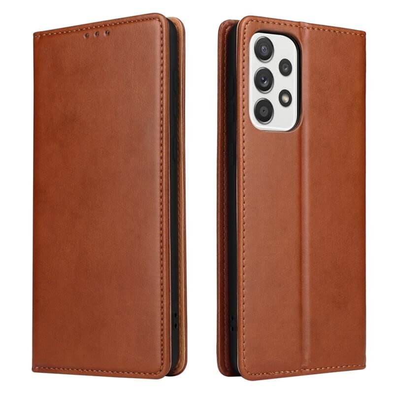 Θήκη κινητού τηλεφώνου από γνήσιο δέρμα υφής PU Fierre Shann για Samsung Galaxy A73 5G (Κόκκινο) (Καφέ)