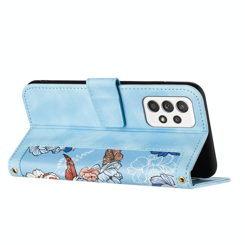 Θήκη τηλεφώνου Samsung Galaxy A73 5G με λουλουδάτο σχέδιο από δέρμα με κορδόνι (Ανοιχτό μπλε)