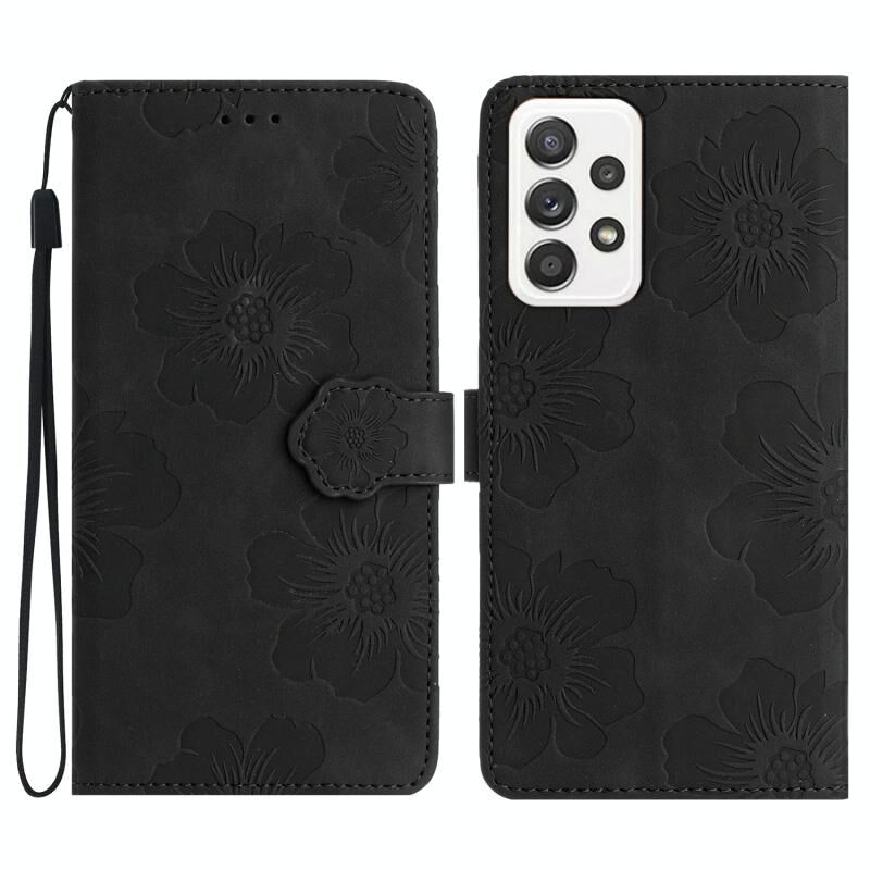 Για Samsung Galaxy A73 5G λουλούδι ανάγλυφο μοτίβο δερμάτινη θήκη τηλεφώνου (μαύρο)