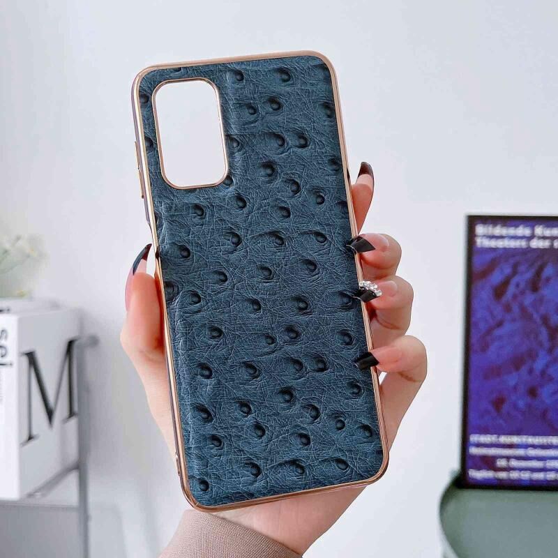 Θήκη τηλεφώνου Samsung Galaxy A73 5G από γνήσιο δέρμα με υφή στρουθοκάμπου, σειρά νανο-επίχρυσης (Πράσινο)