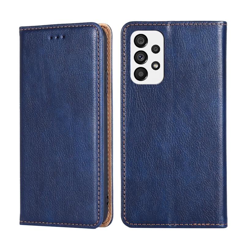 Για Samsung Galaxy A73 5G Γυαλιστερό λάδι στερεό χρώμα μαγνητικό Flip δέρμα τηλέφωνο υπόθεση (Μπλε)