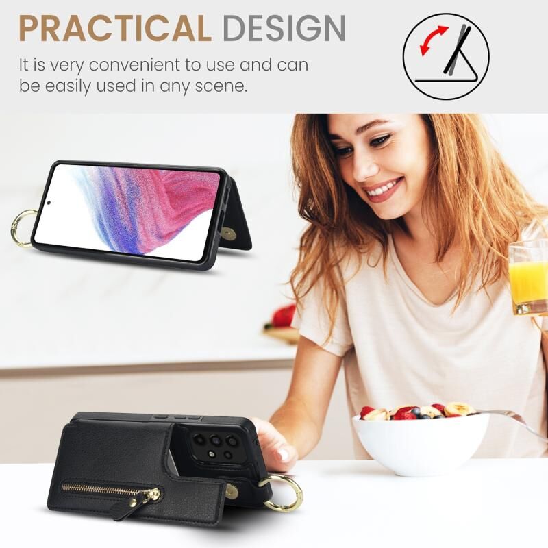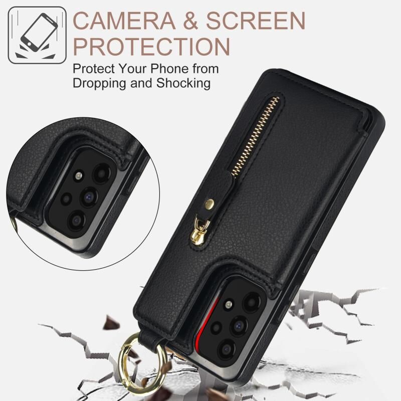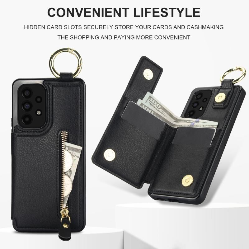 Για Samsung Galaxy A73 5G Litchi υφή φερμουάρ διπλή πόρπη κάρτα τσάντα υπόθεση τηλεφώνου (Μαύρο)