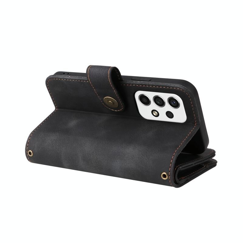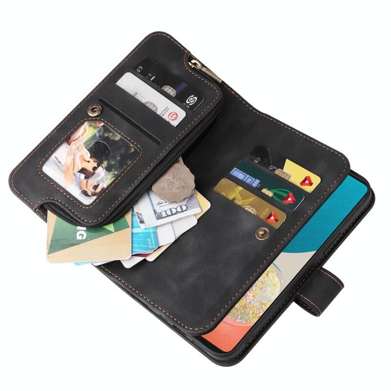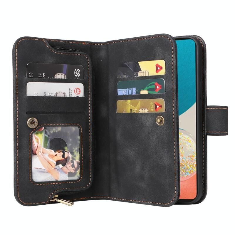 Για Samsung Galaxy A73 5G Πολυλειτουργική κάρτα Slot φερμουάρ πορτοφόλι δερμάτινη θήκη τηλεφώνου (Μαύρο)