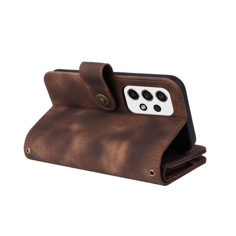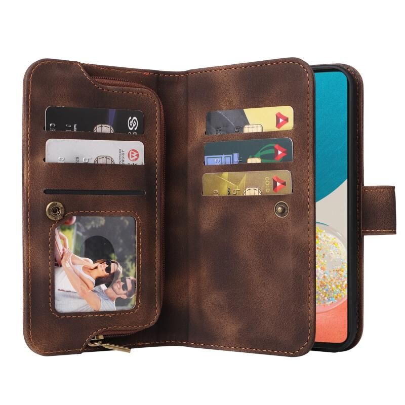 Για Samsung Galaxy A73 5G πολυλειτουργική κάρτα Slot φερμουάρ πορτοφόλι δερμάτινη θήκη τηλεφώνου (καφέ)